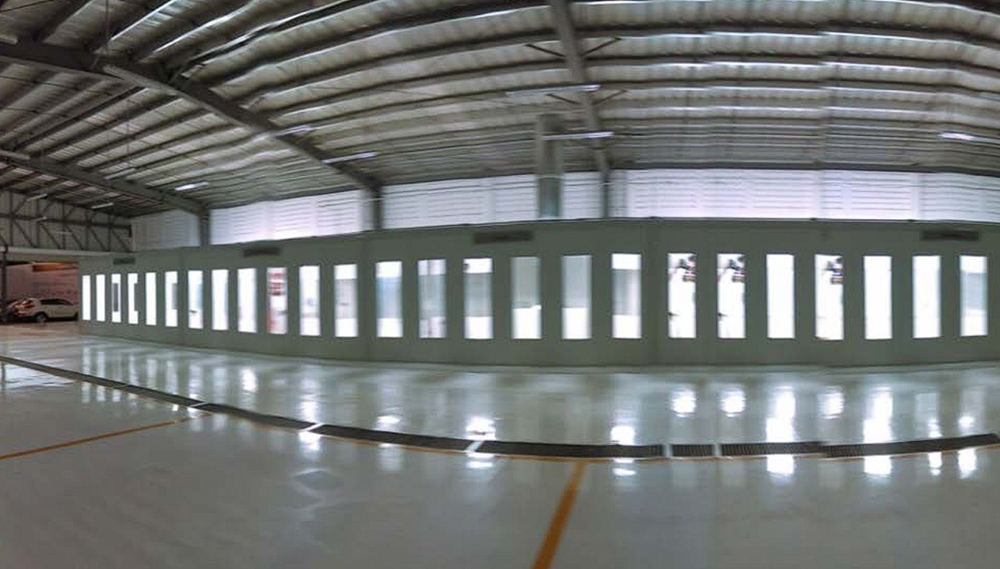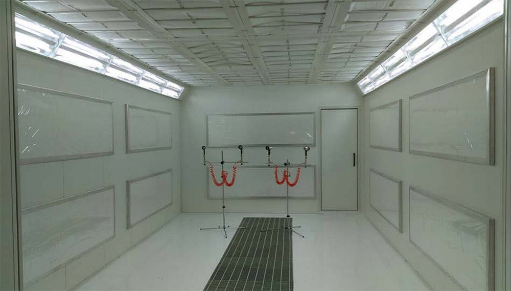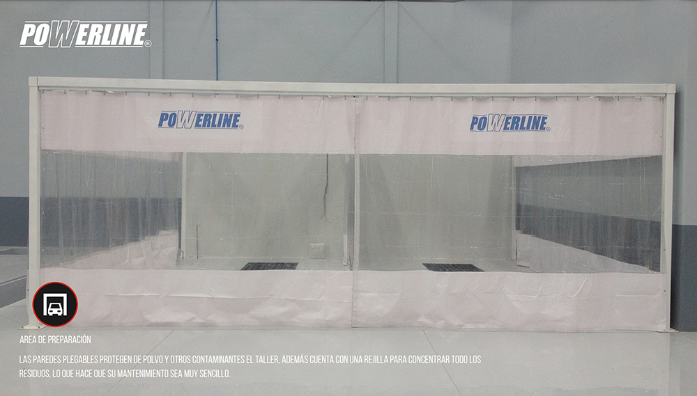 Las paredes pleglables protegen de polvo y otros contaminantes el taller, además cuenta con una rejilla para concentrar todo los residuos, lo que hace hace su mantenimiento sea muy sencillo.